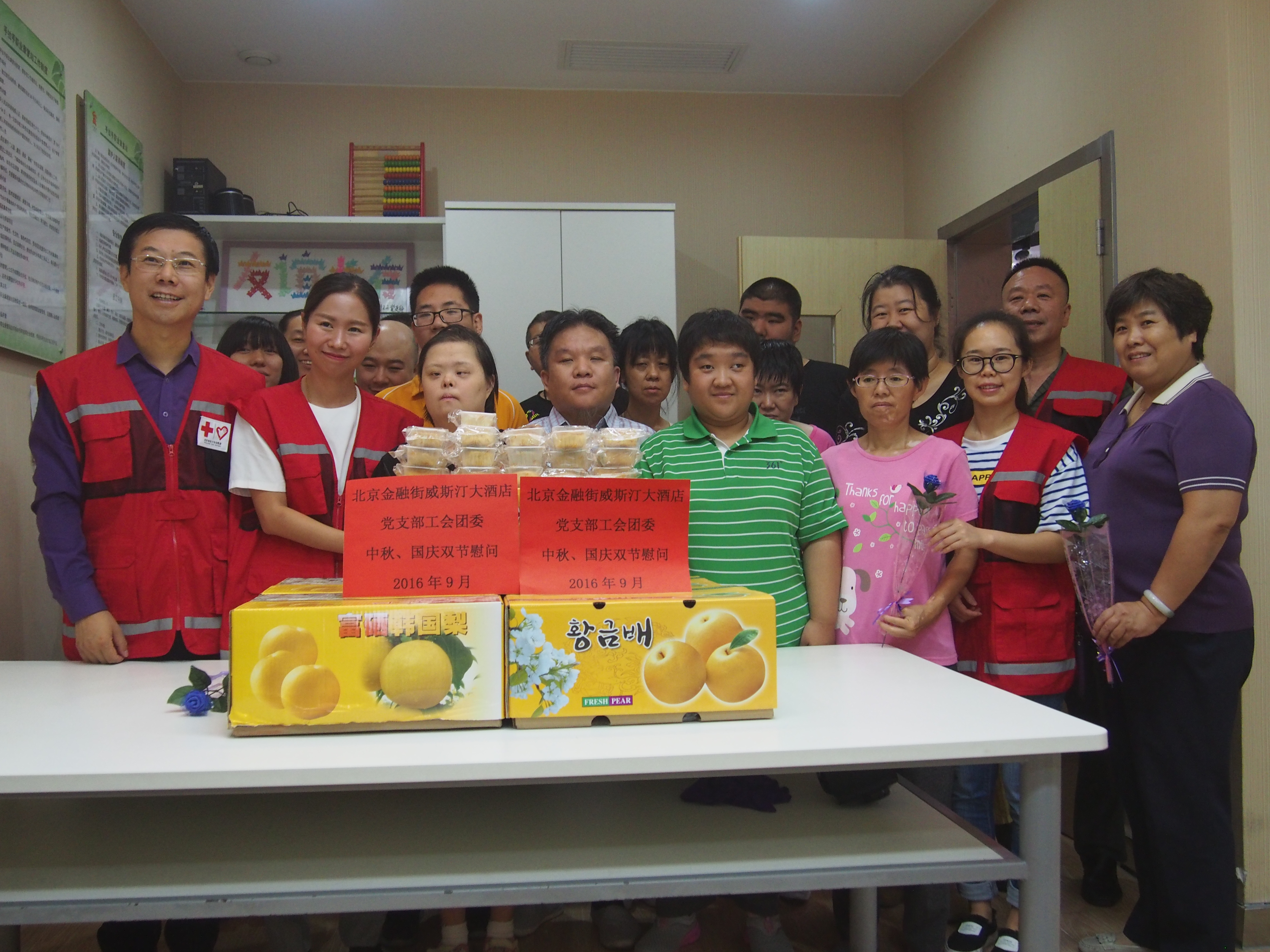 9月13日,中国建设银行西单支行、金融街威斯汀大酒店先后来到金融街温馨家园看望了街道的残疾人朋友们,送上了节日祝福和礼物。学员们为来宾表演了京剧、歌曲等精彩节目,并回赠了自己亲手制作的手工艺品,来表达谢意和节日祝福。14日,金融街街道残联还联合立德社工事务所在温馨家园举办“情系中秋,共融你我”主题活动,在老师的带领下学习制作月饼。