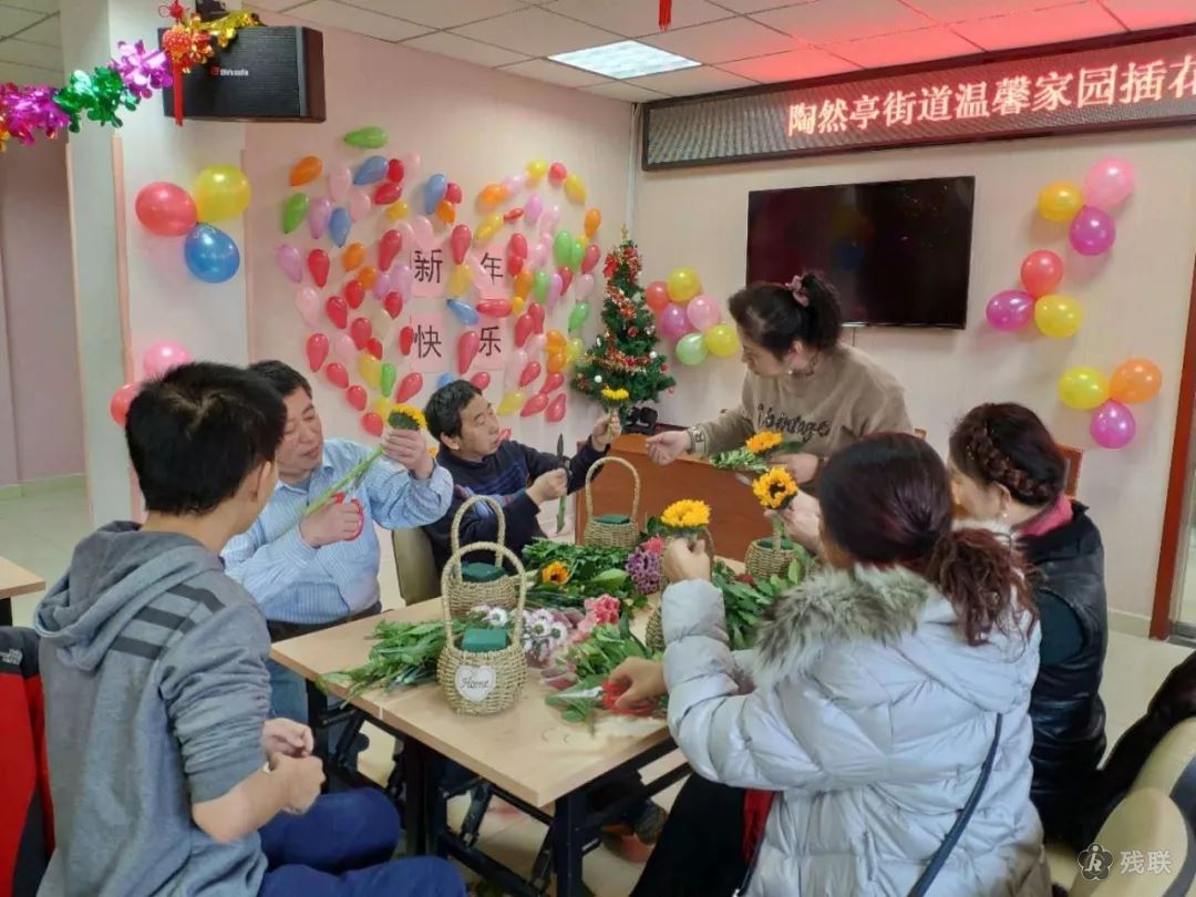 图为 培训现场 陶然亭街道在元旦前夕,先后举办了茶艺培训、创意插花、心里讲座等活动,街道百余名残疾人参与,在共叙友谊中迎接新年。在街道举办的“唱响未来”2019新年联欢会上,街道职康站的学员与家属们欢聚一堂,用精心准备的节目回馈老师、感恩父母、感谢社会,以舞蹈、山东快书、朗诵、合唱等文艺形式,展示一年来的学习成果,展现自己的成长与变化,提升融入社会大家庭的信心。