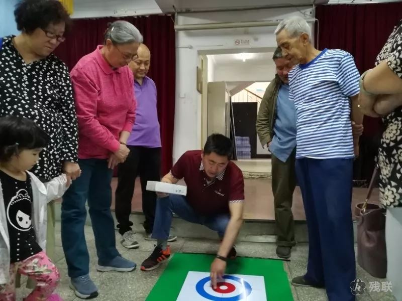 此外,天桥街道香厂路社区残协举办了残疾人模拟冰壶比赛。比赛期间,社区的体育指导员向残疾人选手讲授了冰壶球运动的历史和比赛规则。残疾人选手们面对这个新的体育活动,热情十足,在比赛过程中,大家使出浑身的劲,冰壶的角度、投准等趣味活动,激发了大家对模拟冰壶球运动的兴趣。老李平时乒乓球打得非常好,他的击球的手感越来越好,有的选手由于年纪的原因,手脑协调的能力不是很好,所以动作较慢,投准也不那么准,但他们在伙伴们的鼓励下也不气馁。互相加油鼓劲,他们表示,今后我们要加强训练,就一定能够掌握好各种动作,在以后的比赛当中取得好成绩!