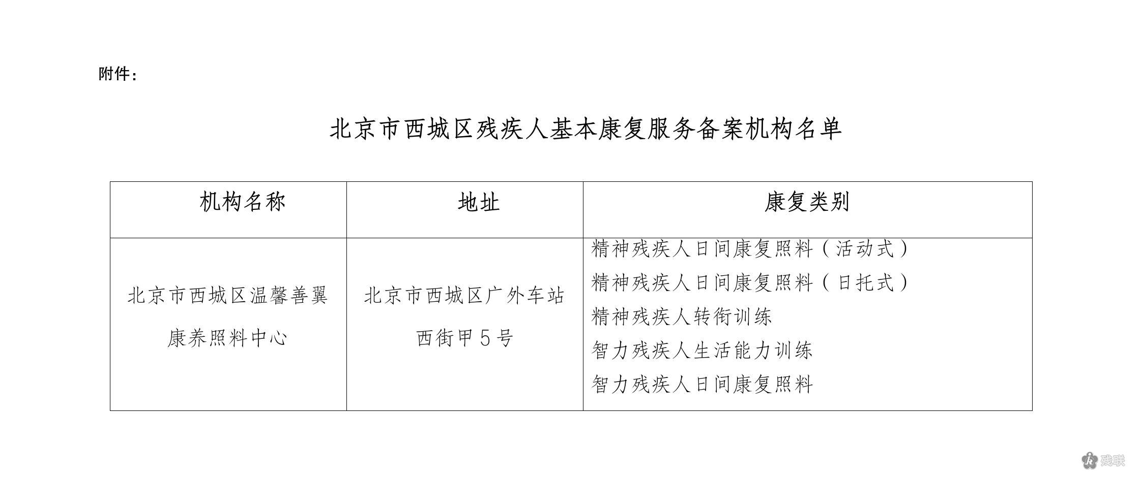 附件:北京市西城区残疾人基本康复服务备案机构名单