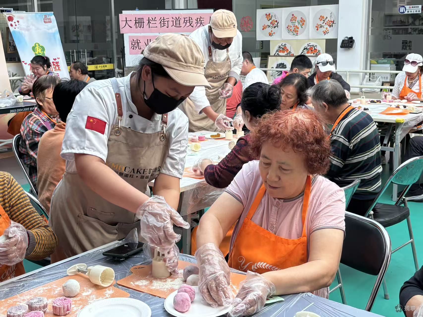 大栅栏街道残联在中秋节前夕组织开展庆中秋月饼制作活动,通过带领残疾人朋友参与手工制作,帮助其掌握烘焙技能,感受节日氛围,同时提升社交互动能力。