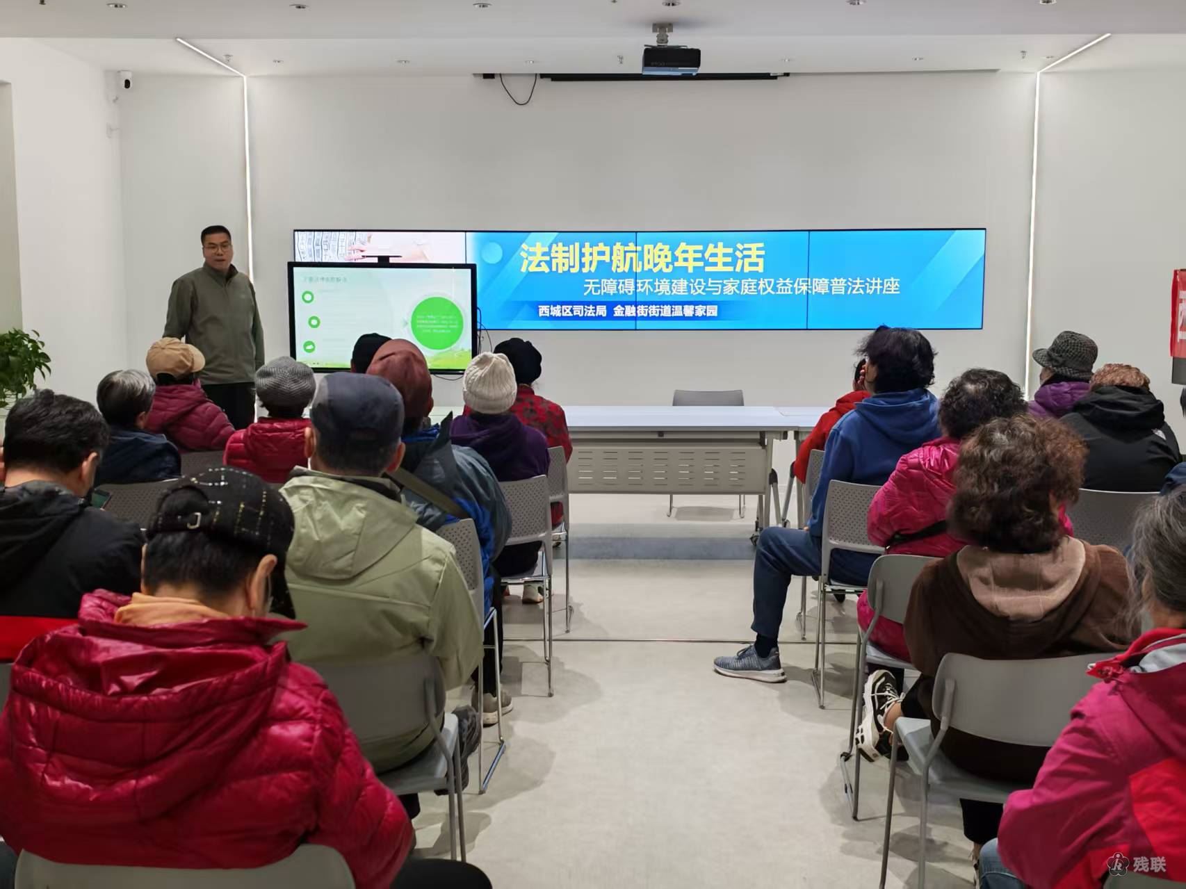 为满足居民法律需求、普及法律知识,11月13日,金融街街道温馨家园联合西城区司法局晨夕普法团队,在丰汇园社区举办“法治护航银发生活”主题普法讲座,邀请北京京品律师事务所宋飞达律师主讲,40 余位残疾人朋友及辖区居民参与。