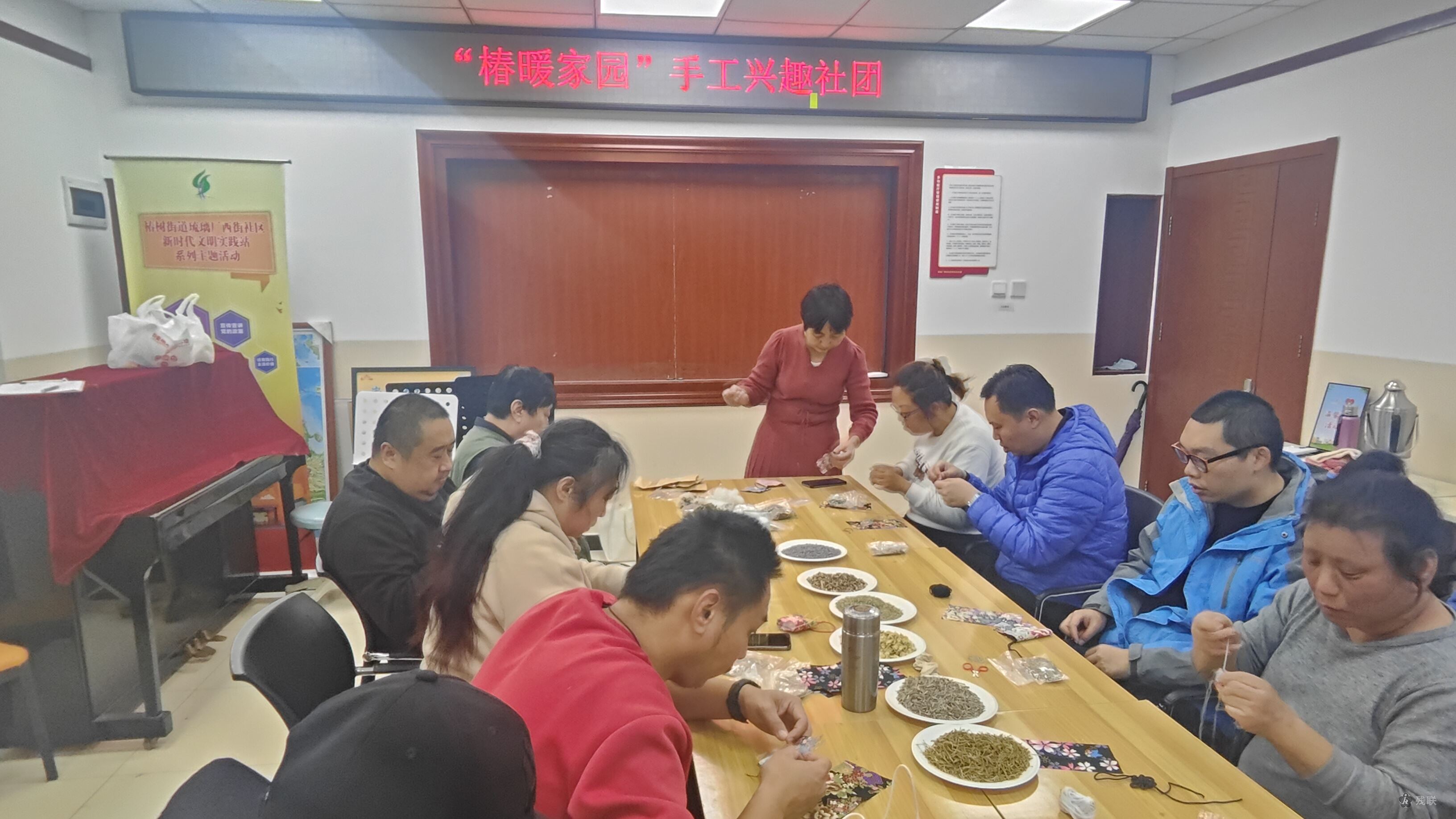 活动室内,五色丝线泛着柔光,艾草与薰衣草的清香萦绕。手工老师轻柔示范、俯身细语,耐心协助大家缝制,一针一线间满是专注与温情。这场活动让香包带着手心温度传递温暖,更缝制出大家对生活的热爱与期待,幸福填满整个空间。
