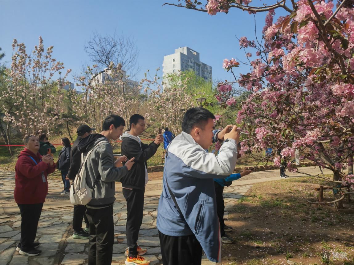抵达海棠花溪后,眼前的景象令人心旷神怡:这里花如海、人如织,微风轻拂,柳丝摇曳,淡淡的花香扑面而来,绚烂绽放的海棠花缀满枝头,粉白相间的花瓣一簇簇、一团团,在明媚的春光下显得格外娇艳。微风掠过,花瓣轻轻飘落,宛如漫天飞舞的雪花,景致美不胜收。学员们沿着花溪岸边缓缓漫步,清澈的河水静静流淌,与岸边的海棠花交相辉映,构成了一幅绝美的春日画卷。大家放慢脚步,一边欣赏着如画的春日美景,一边拍照留念,尽情感受着春风的温柔与大自然的馈赠。