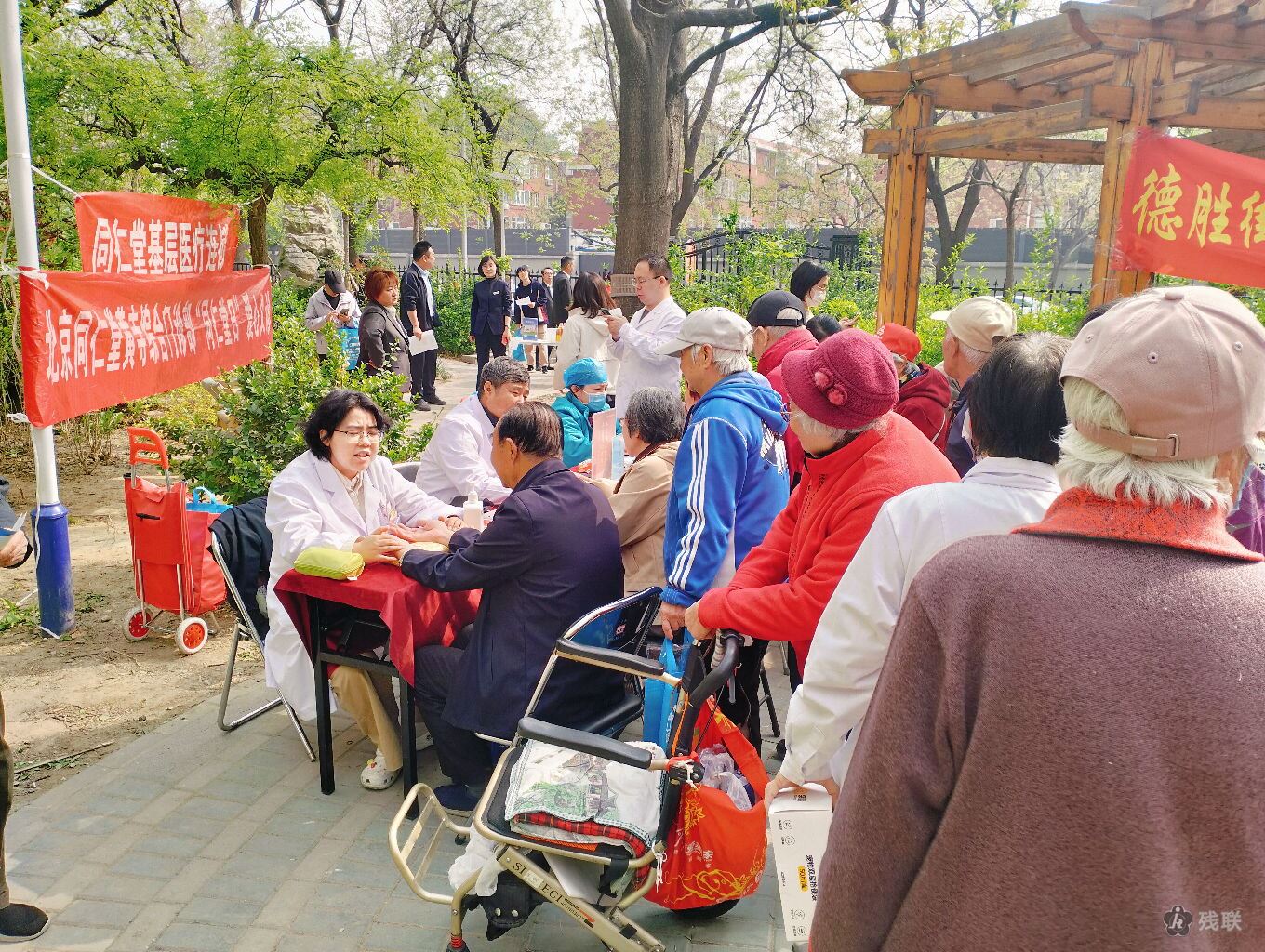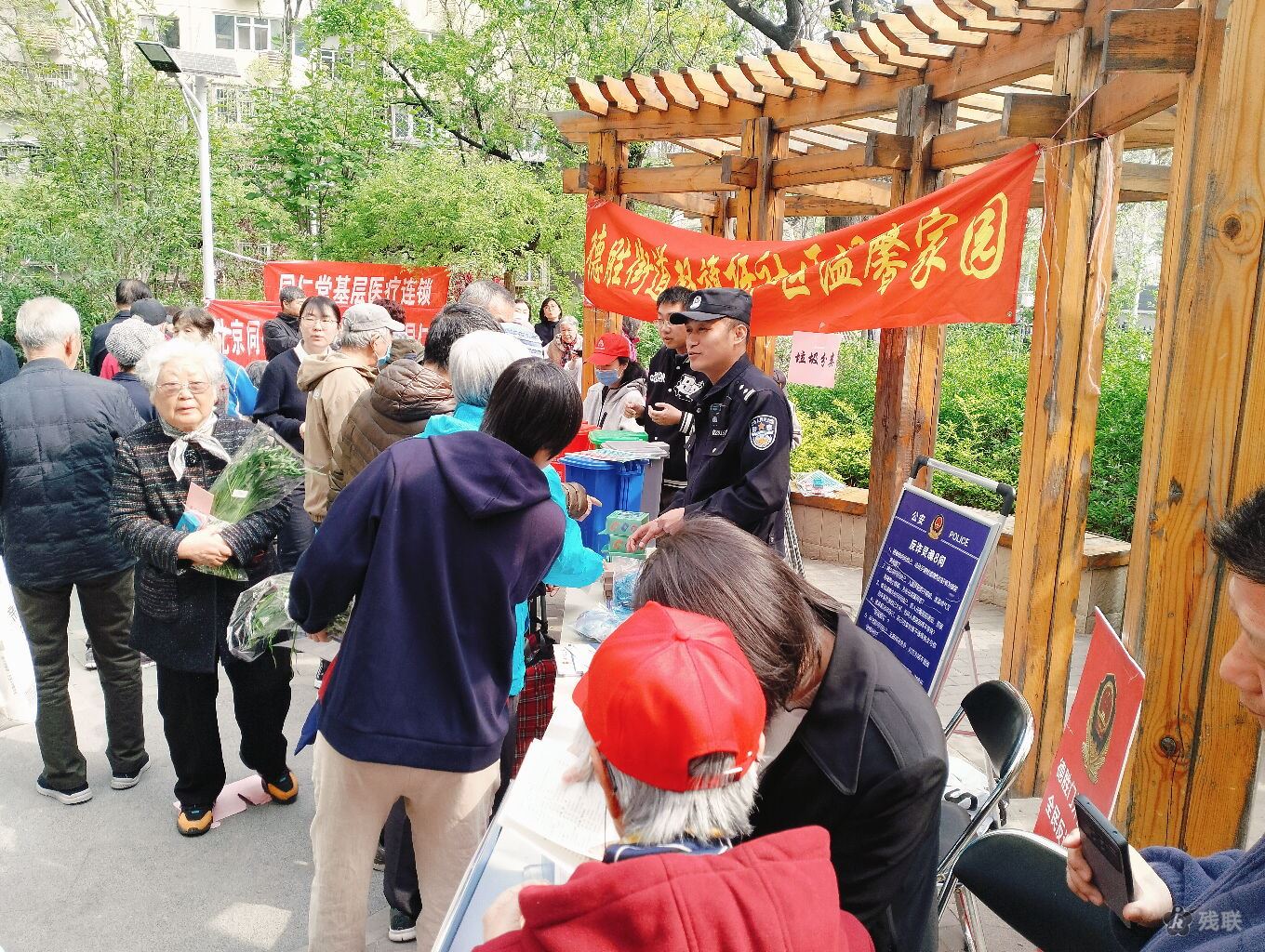 活动当天,双旗杆社区东里小区内人头攒动,暖意融融。在党建引领的号召下,社区党组织充分发挥桥梁纽带作用,携手同仁堂中医医院、工商银行、光大银行、北京银行、中粮集团及辖区派出所等共建单位,共同为居民提供“一站式”便民服务。