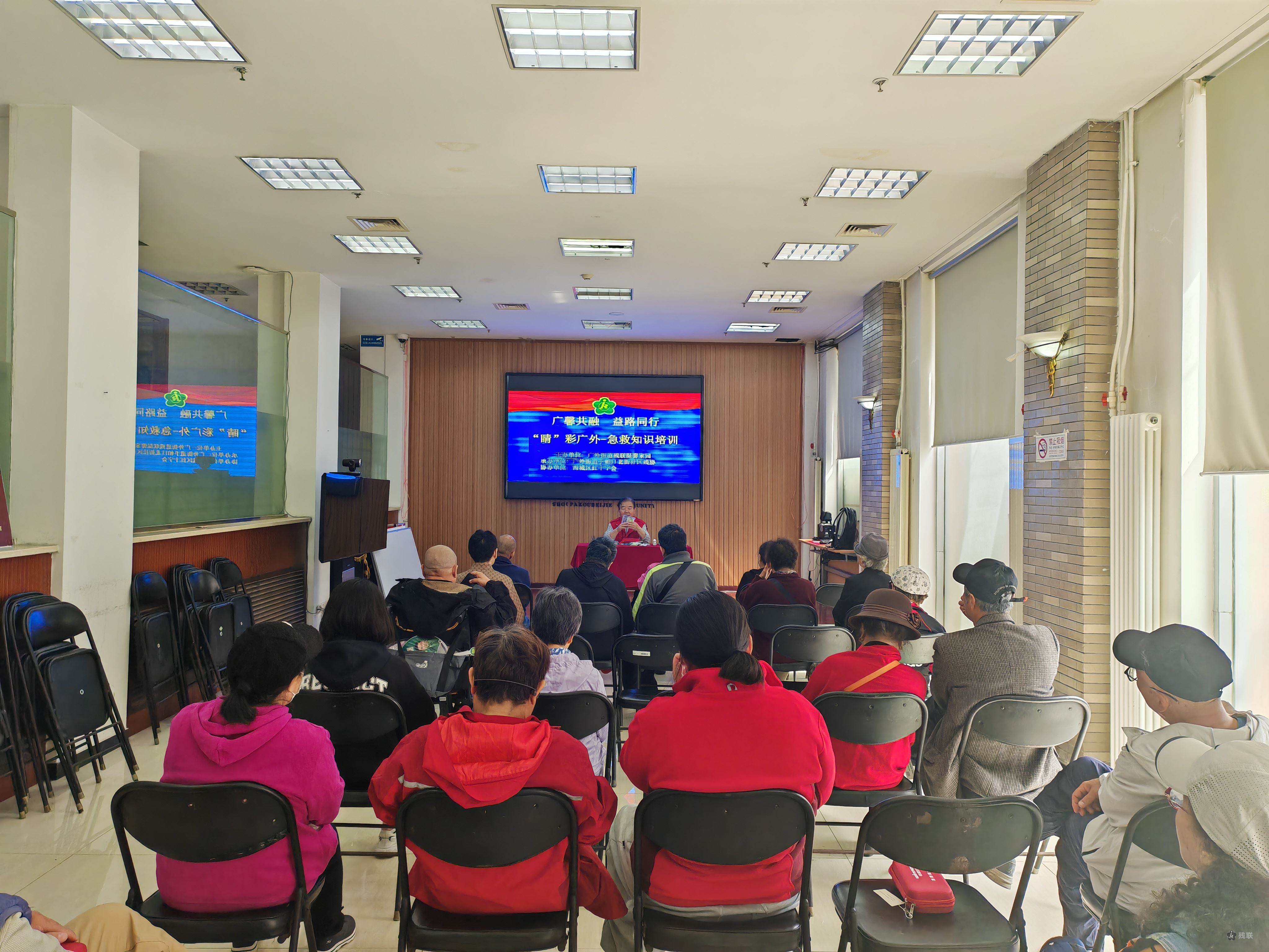 4月22日,系列活动首场急救知识讲座在小马厂-天宁寺片区手帕口北街社区活动室启动,覆盖该片区11个居委会,30名残疾人及残疾人家属参与其中。西城区红十字会专业讲师崔老师现场授课,采用理论讲解与模拟实操相结合的方式,重点传授心肺复苏术(CPR)和海姆立克急救法,帮助参与者掌握“黄金救援4分钟”关键技能。活动结束后,街道残联为每位参与者发放了含基础救护物资的便携急救包。