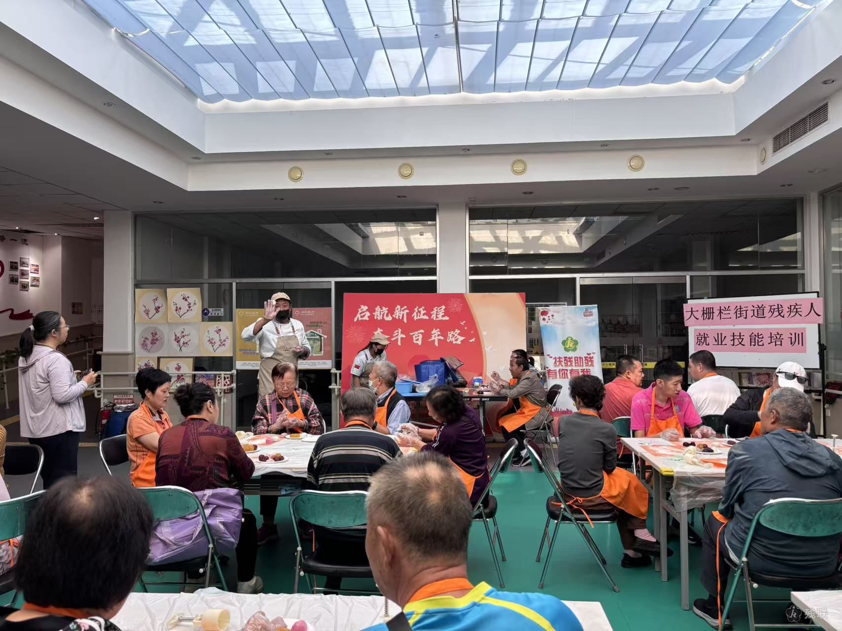 大栅栏街道残联在中秋节前夕组织开展庆中秋月饼制作活动,通过带领残疾人朋友参与手工制作,帮助其掌握烘焙技能,感受节日氛围,同时提升社交互动能力。