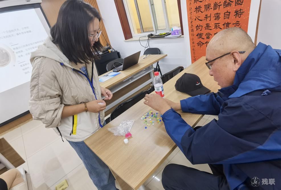 残疾人朋友根据个人创意设计小夜灯样式,在工作者协助下完成精细动作训练。活动中,王阿姨克服手抖困难坚持完成马赛克贴片制作,并通过交流分享缓解情绪压力。