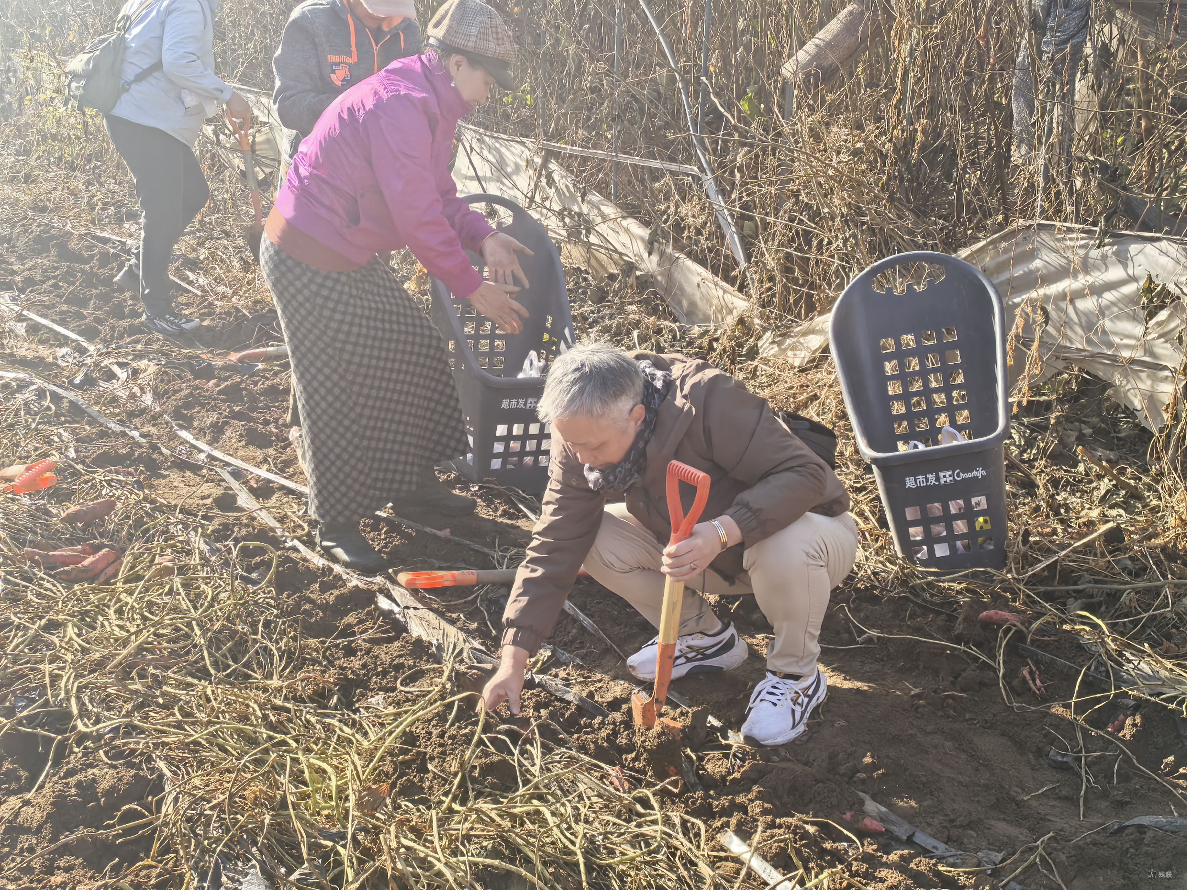 在温馨家园工作人员的统一组织下,参加活动的残疾人朋友们有序乘车来到中垦三菱友好示范农场。园区工作人员热情接待,并讲解采摘注意事项。随后,采摘过程中,大家乐此不疲,领取塑料袋后,大家分组行动。他们拿起农铲,开始体验耕种的艰辛与乐趣。大家神情高涨,相互协作,非常积极主动向果园工作人员寻求帮助、比如了解红薯和水果萝卜的生长习性等农事知识,展现了残疾人朋友好学、积极的一面。